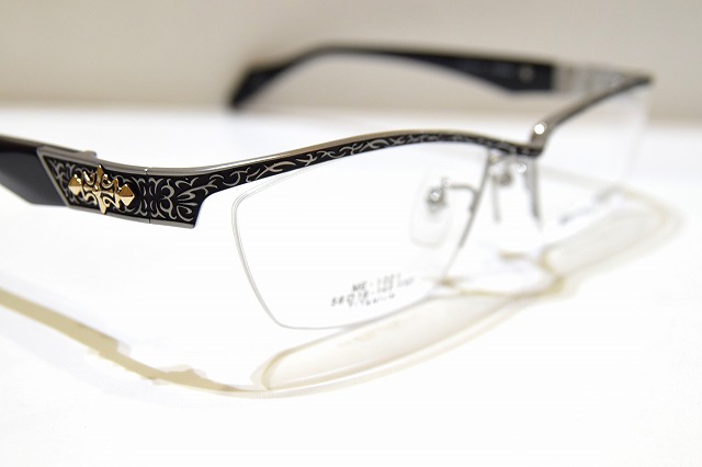 デコレーションや彫金が施された高級感あるおしゃれなメガネフレームです。
