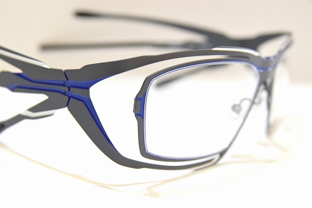頭を抱え込むようにフィッティングをすメガネフレームです。