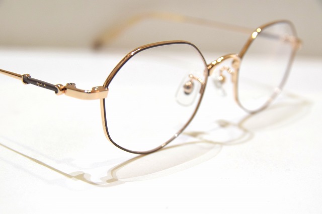 ゴールドカラーのフレームは、肌なじみが良く、顔まわりを明るく演出します。