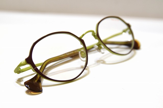 落ち着いたブラウンのメタルリムに、鮮やかなグリーンのフロント&テンプルを組み合わせた、個性と上品さを兼ね備えたメガネフレームです。