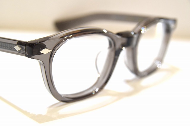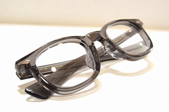 程よく透け感のあるクリアグレーカラーが印象的な、クラシックテイストの太セルウェリントンフレームです。