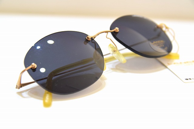 リムレス(縁なし)構造 と、繊細なゴールドメタルテンプルが特徴で、軽やかな掛け心地と洗練された存在感を両立しています。
