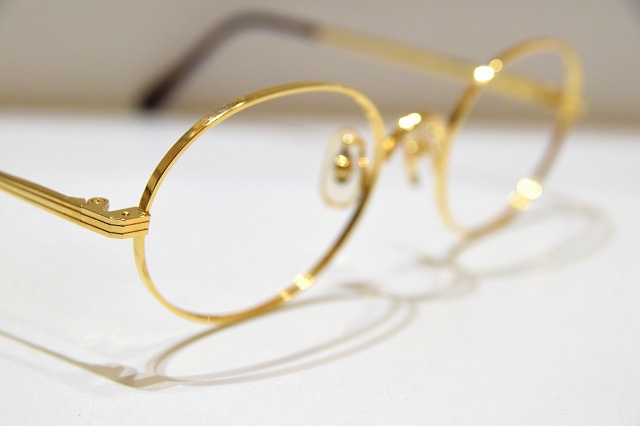 イエローゴールドの高級感あふれるメガネフレームです。