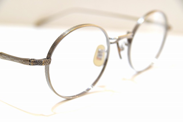そしてテンプルとブリッジにびっしり入った彫金模様が、このフレームの品格を一段引き上げています。