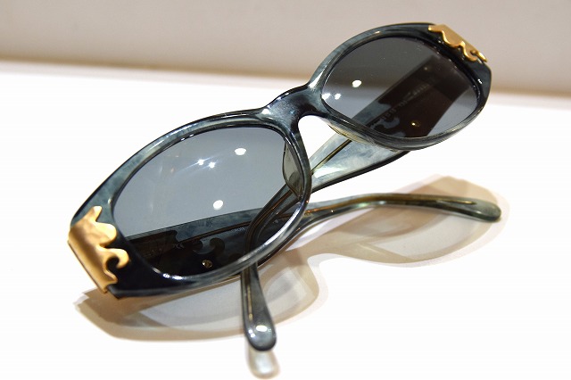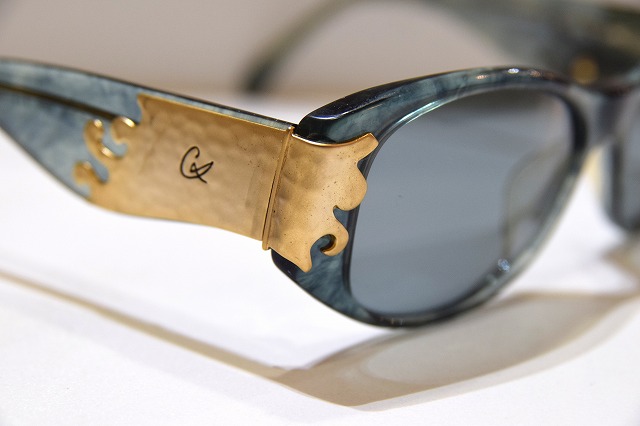 最大の特徴は、テンプル部分に大胆にあしらわれたゴールドカラーのメタル装飾です。