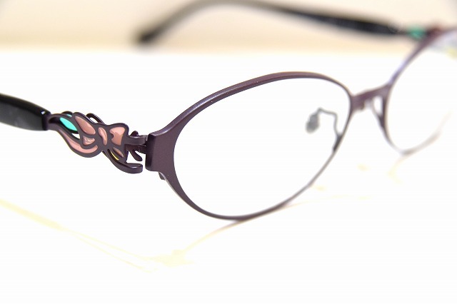 テンプルの付け根部分には、リボンをモチーフにした立体的な装飾が施され、さりげなくあしらわれたグリーンカラーが上品なアクセントになっています。