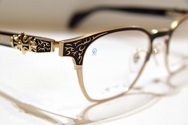 デコレーションや彫金が施された高級感あるおしゃれなメガネフレームです。