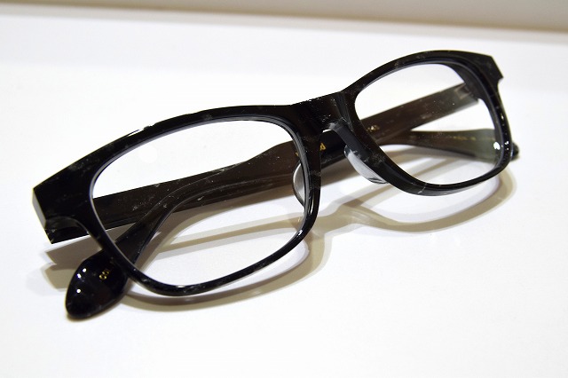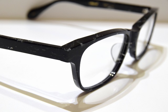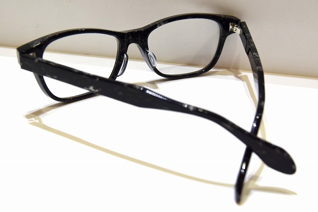 ブラックの大理石柄本セルロイド生地を使った、高級感あふれるメガネフレームです。