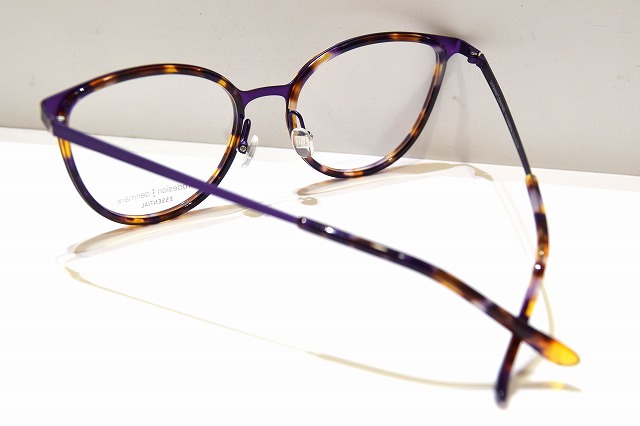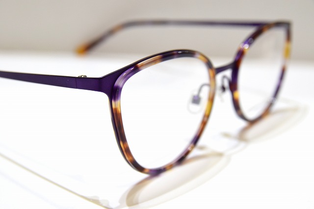 パープルカラーにべっ甲柄を合わせたとても面白い組み合わせのメガネフレームです。