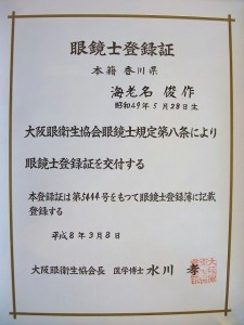 当店は大阪眼衛生協会会長である医学博士「水川 孝」氏認定の認定眼鏡士が在籍するメガネ店です。